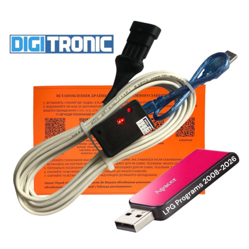 - Комплект програмного забезпечення на USB-накопичувачі: У комплекті поставляється USB-накопичувач, що містить повний набір необхідних програм для діагностики та налаштування ГБО STAG, MRC, YOTA, LPGTECH, KME, DIGITRONIC, LOVATO, ATIKER, актуальних для СТО України з 2008 по 2026 рік, а також драйвери для кабелю.