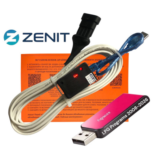 Кабель для діагностики та налаштування ГБО ZENIT з індикацією сигналів на чіпі FTDI плюс флешка з додатками ГБО та драйверами